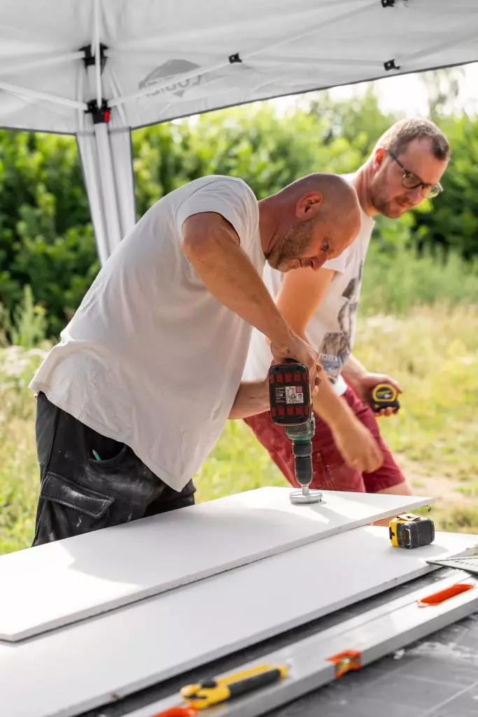 J’ai peu à peu ressenti le besoin de me rapprocher de ce domaine qui m’attirait de plus en plus. Ce projet réunissait mes passions profondes : la cuisine, le bricolage, et surtout l’envie d’entreprendre. Avec Mickaël, ami de longue date et lui aussi passionné de construction, nous avions déjà mené ensemble un premier projet locatif. C’est de cette expérience qu’est née l’envie d’aller plus loin : concevoir des chalets uniques, pensés de A à Z.